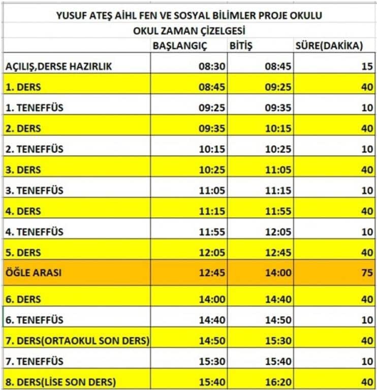 2025-2026 Eğitim Öğretim Yılı Ders Programı